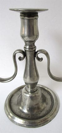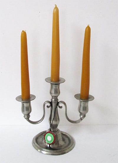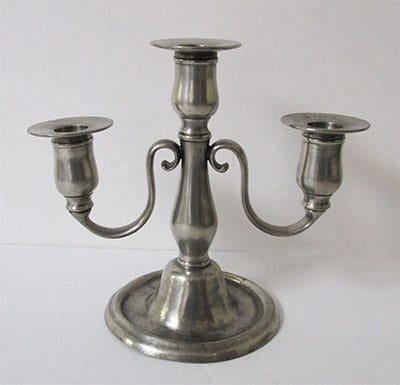 Candelabrum 2 Branches, 3 Lights, made in France of solid pewter. Antique Finish. Height 7 inches, width 8 inches.
